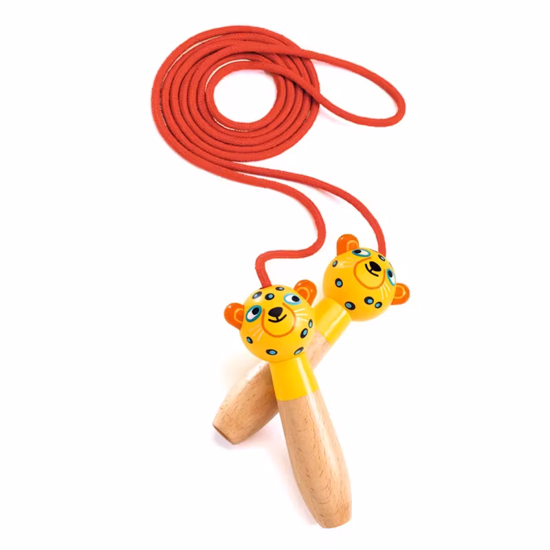 Ett fint hopprep med bedårande leopard-formade handtag.