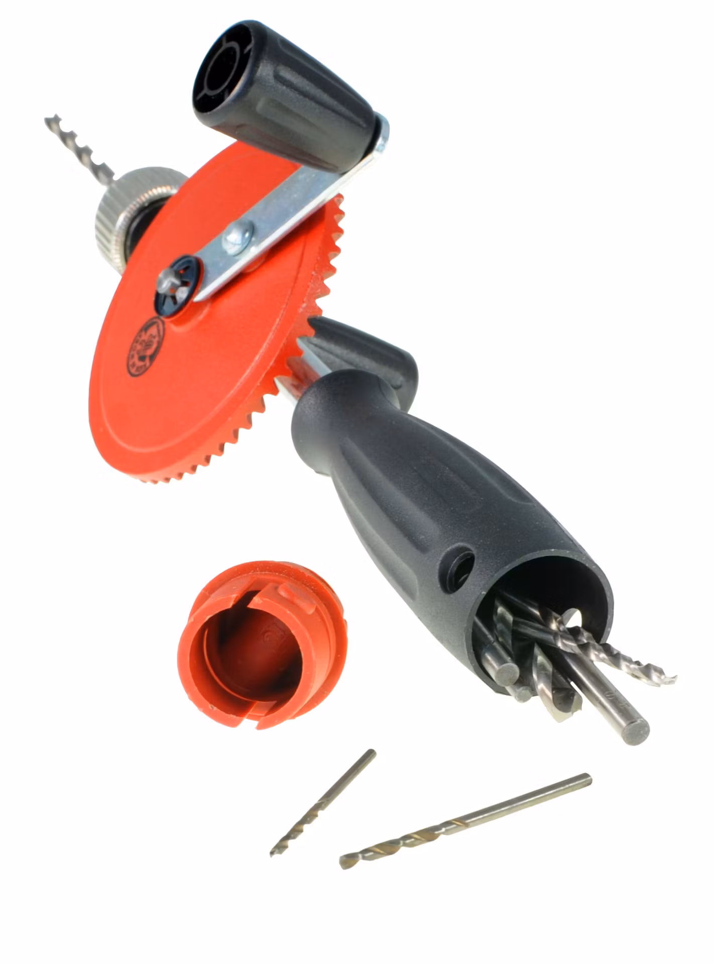 Handborr av professionell kvalitet. Borrar kan förvaras i handtaget. För borr upp till 8 mm.