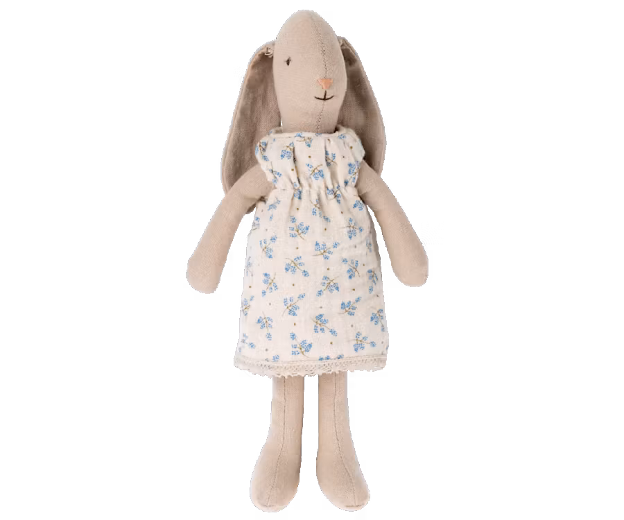 en söt kanin som är gjord i linnen i storlek 1, passar i dockskåpet och möblerna i storlek mini.