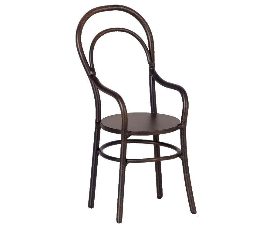 Maileg- Miniature chair with armrest, / tillbehör 125 kr I lager Lägg i korgen Leverantör: maileg Produktbeskrivning Fin stol med armstöd.Storlek: 13*6cmMaterial: Metall+3år