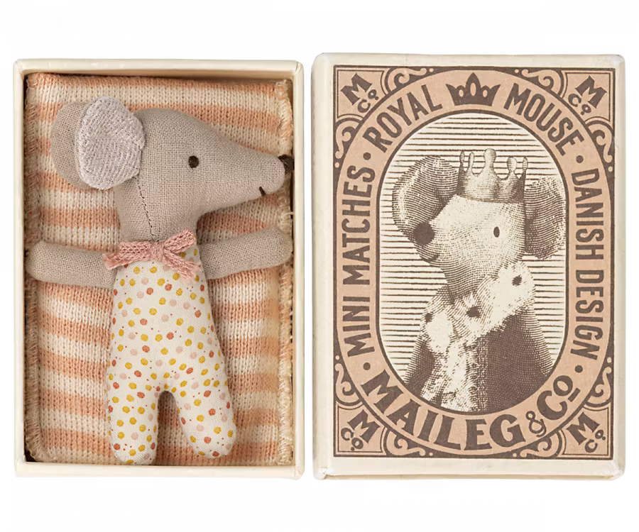 Maileg- Sleepy/wakey baby mouse in matchbox - Rose/ möss