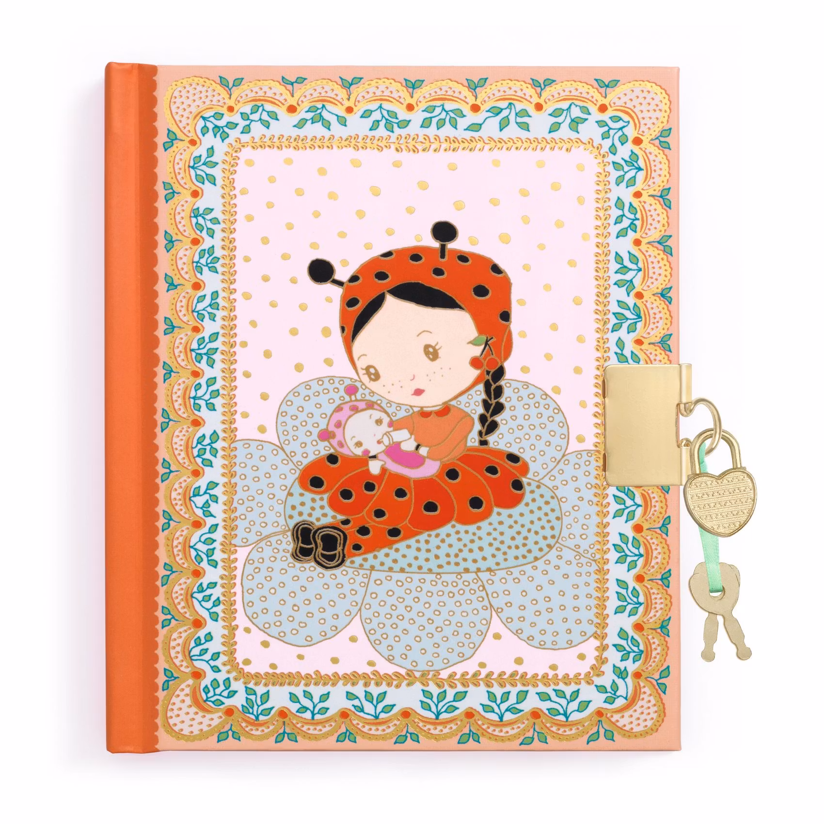 Dagboken innehåller 92 linjerade sidor som var och en pryds med en blomstergirlang. Ett hjärtformat lås med två nycklar medföljer, så att dina hemligheter förblir skyddade från nyfikna ögon - men kanske kan delas med någon extra speciell.