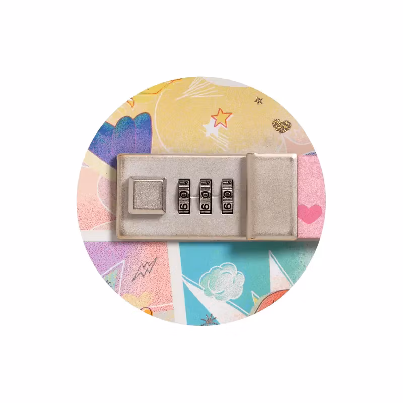 Den hårda pärmen har ett kodlås som skyddar dina innersta tankar och hemligheter från snokande ögon.