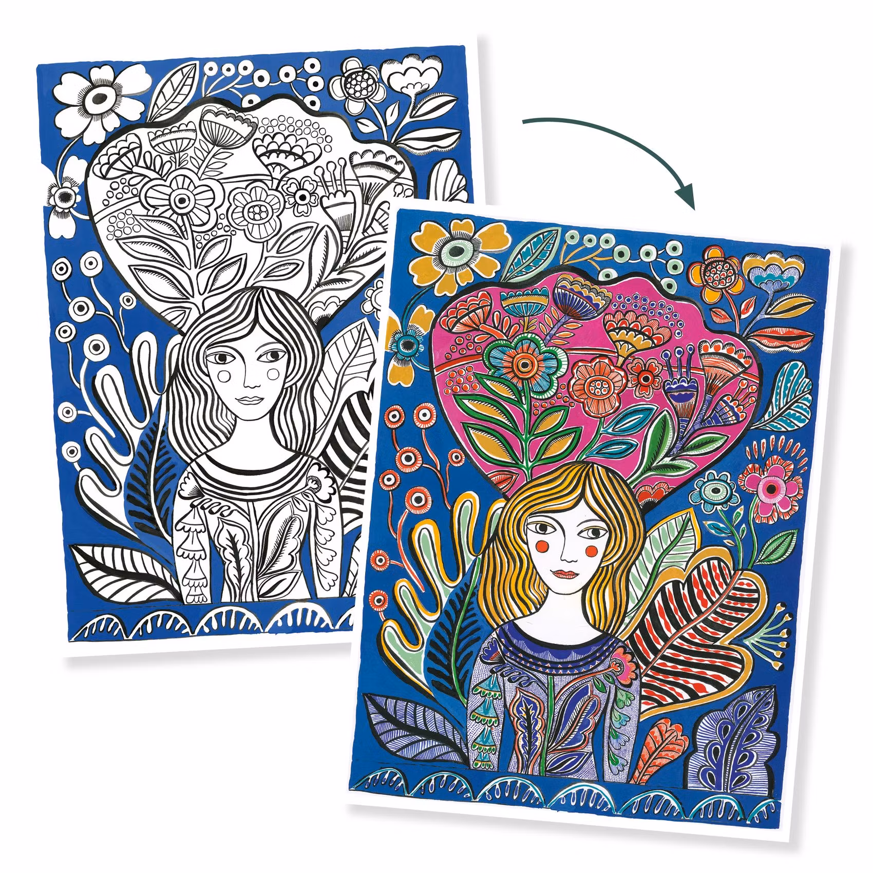 Djeco- Colouring Gallery - Blooms / Målar alt klisterbok. Pyssla.
