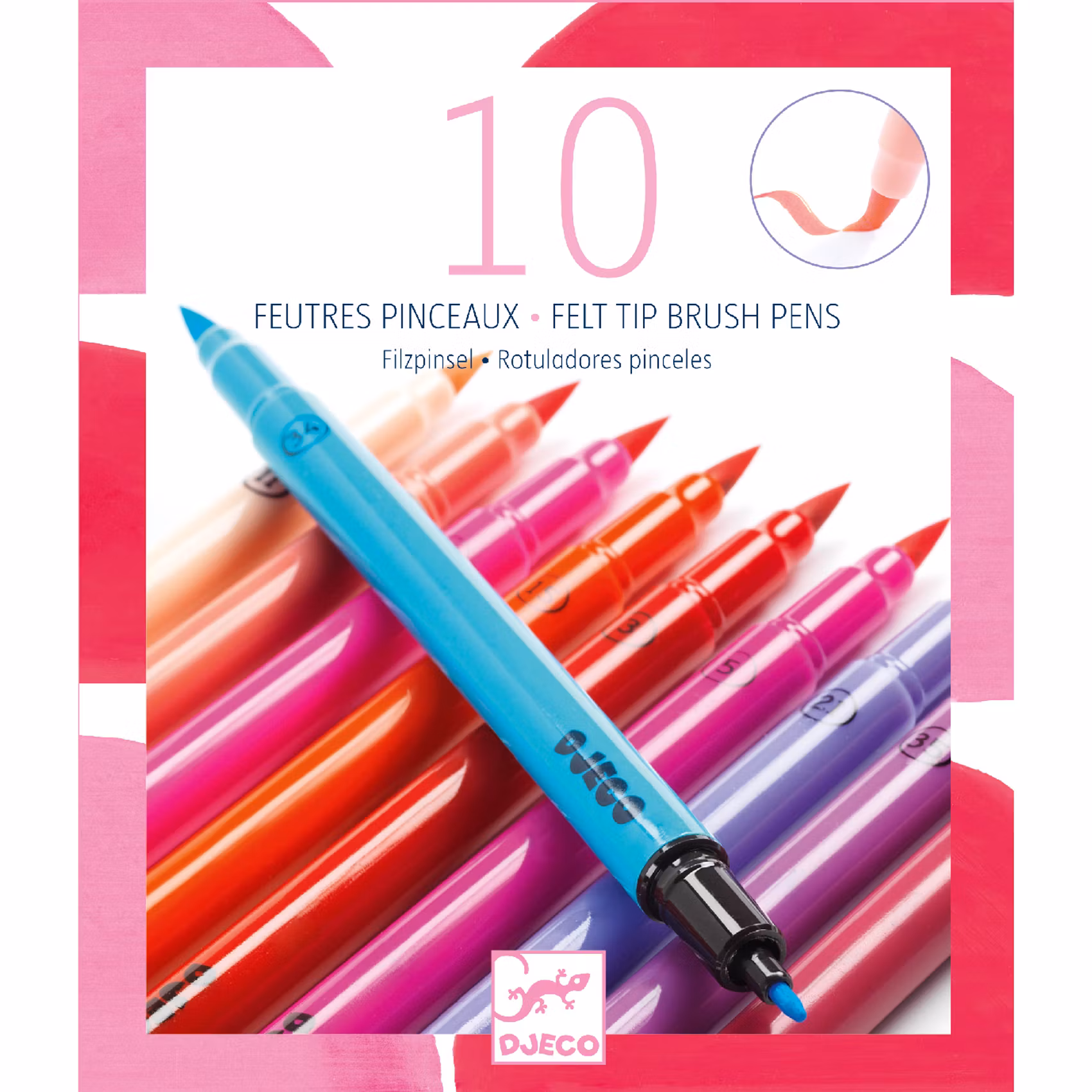 Ett set med 10 st filtpennor med dubbla spetsar och söta färger - vinröd, mörklila, röd, cinnoberröd, mörkrosa, ljusrosa, gammelrosa, hudton, ljusblå och ljuslila.