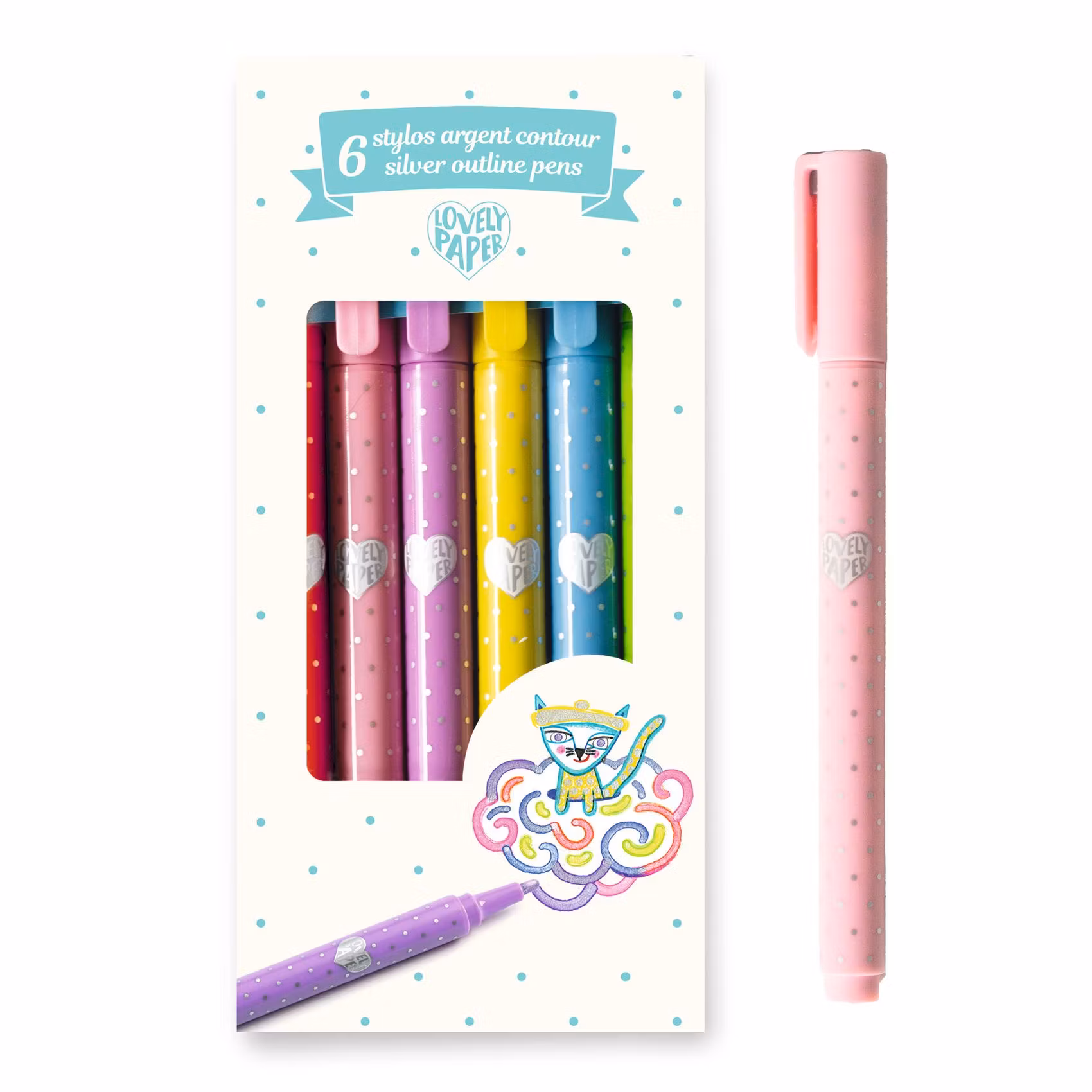 Djeco- 6 Silver Outline Pens/ metallic-pennor i silver med konturer