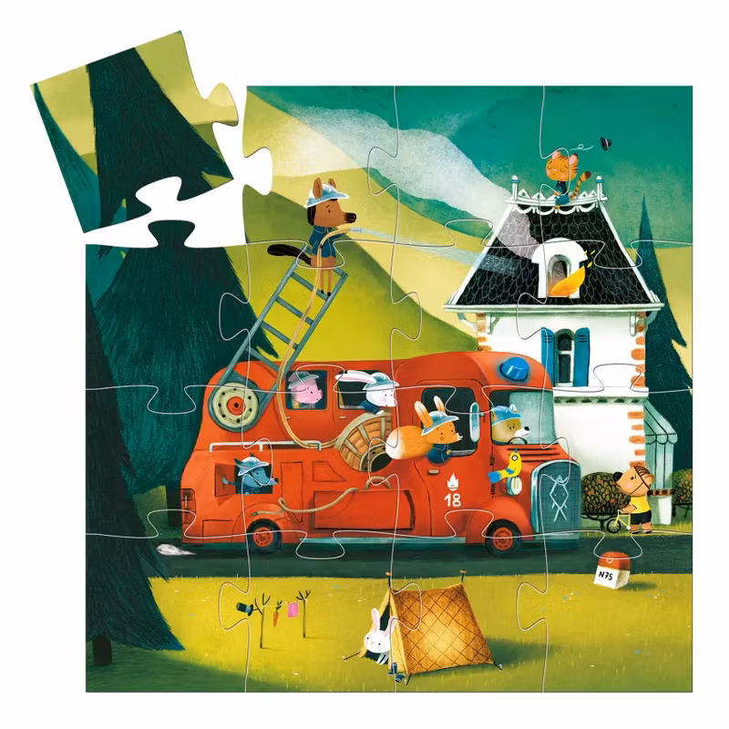 Ett kul pussel med 16 bitar. Motivet är i fina färger och föreställer en brandbil som ryckt ut till en brand.