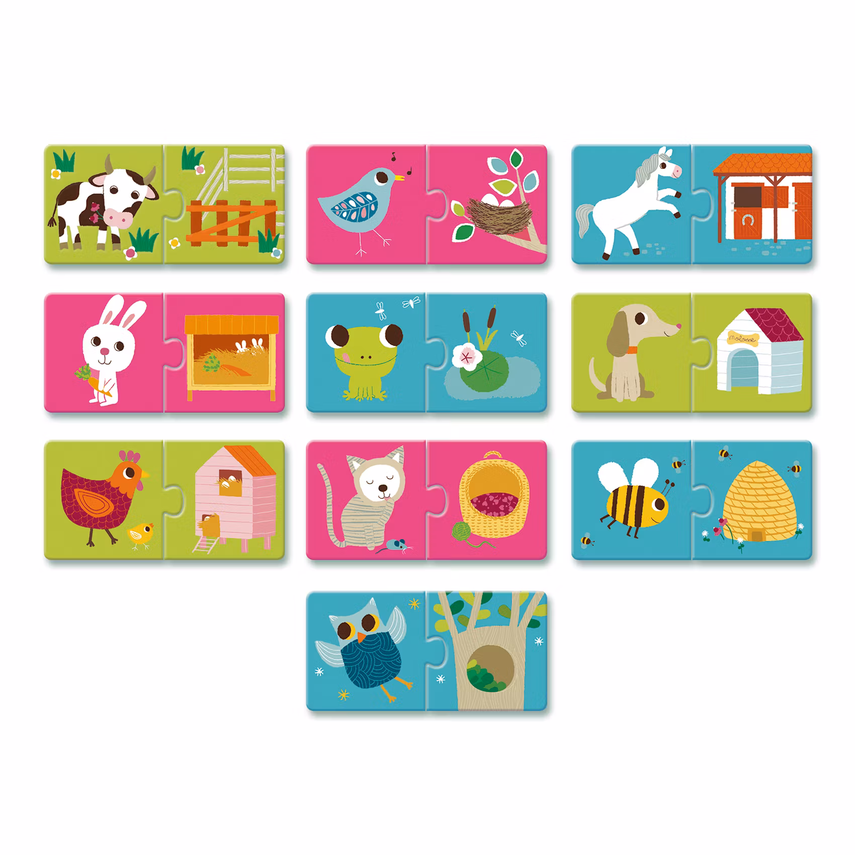 Ett set med 10 fina två-bitars pussel i kraftig, FSC®️ certifierad kartong.
