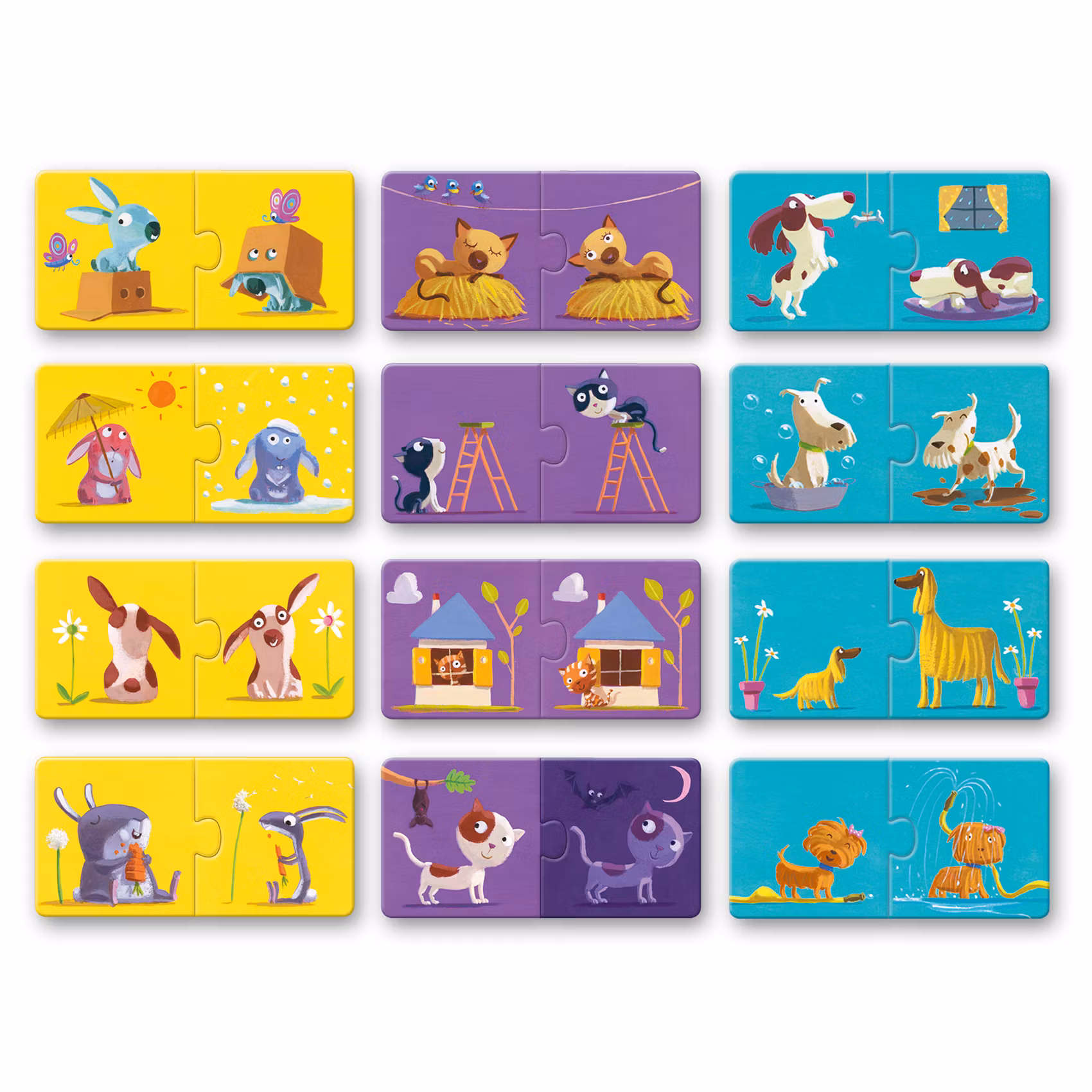 En snygg liten låda fylld med 12 lärorika 2-bitars pussel. Temat är motsatser, t ex dag och natt, liten och stor, ren och smutsig, under och ovanpå med flera.