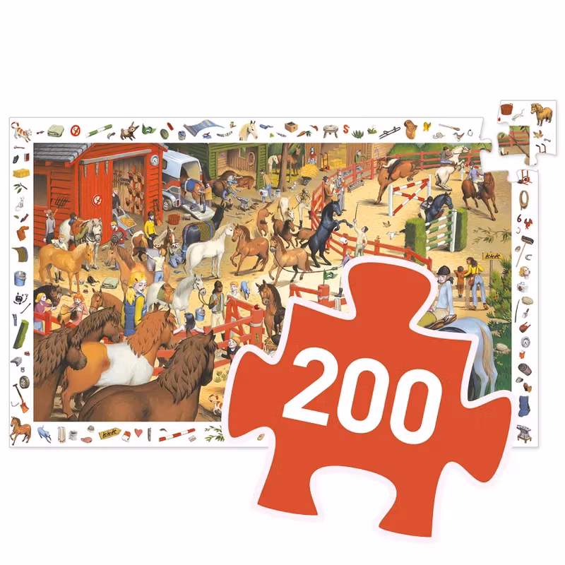 Djeco- Observation puzzle, Horse riding, 200 pcs - FSC MIX