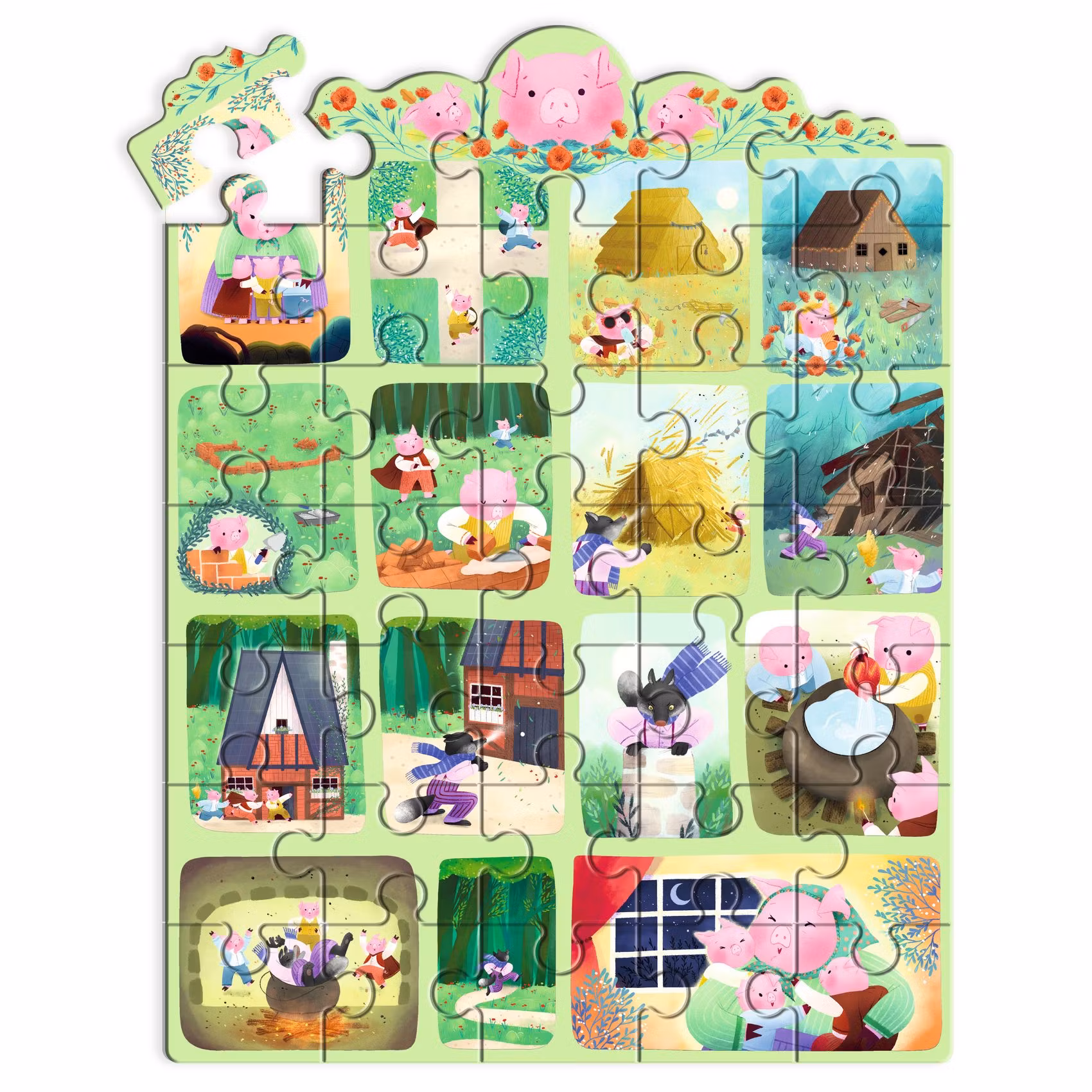 Djeco- Story Puzzle, The Three Little Pigs - 35 pcs - FSC MIX