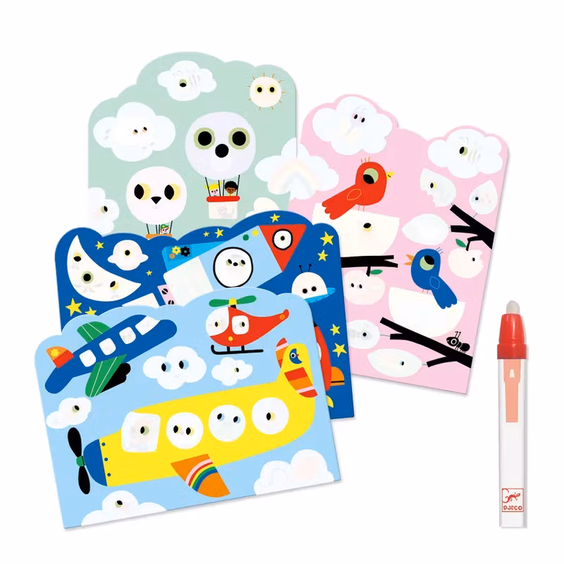 Pennan fyller man med vatten och när man målar över de vita områdena på bilden dyker det upp spännande överraskningar på motivet.