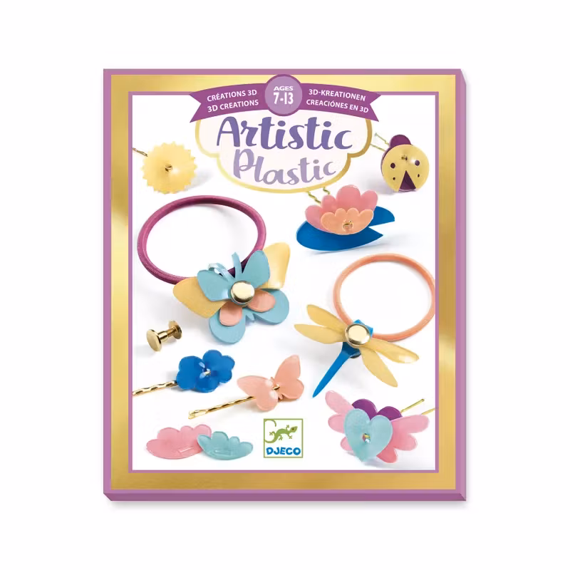 Ett kul set för att göra snygga hårdekorationer av magisk plast.