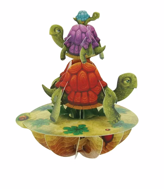 Varje kort packas platt och öppnas för att bilda en 3D-skulptur med rörliga delar och plats för meddelande.